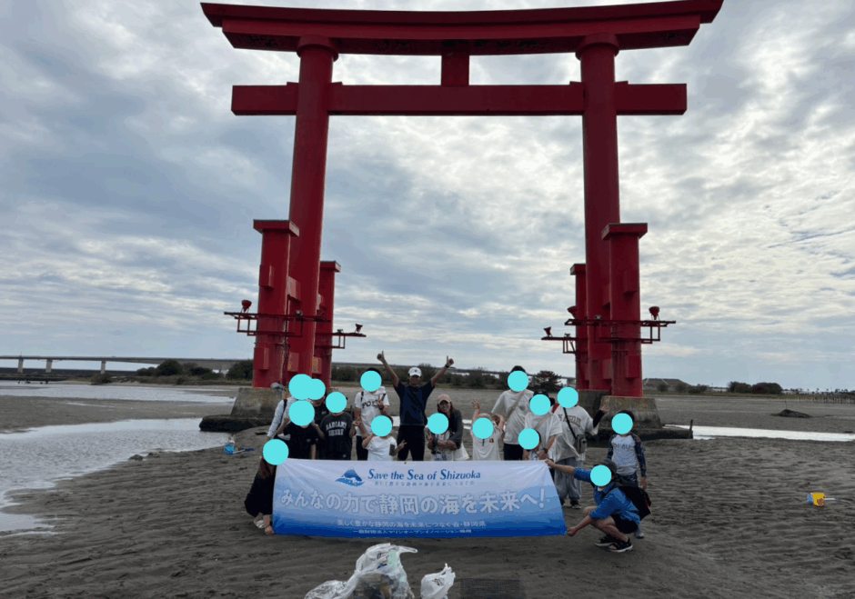 弁天島の鳥居そばに着岸して、コアマモ場も見学しました。ここには、小さな浜名湖の生き物がたくさんいます。大人の方にはゴミ拾いにご協力いただきました。打ち上げ花火のゴミ、初めて見ました!