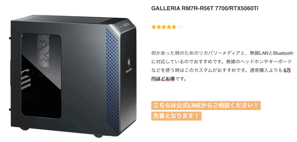 ドスパラとは・・・全国展開しているパソコンメーカー。Eスポーツのスポンサーにもなっている。 ガレリアとは・・・ドスパラのゲーミングPCブランド。素材や質感も高品質で、末長く使える。リセールも高く、資産価値が高い。 リセールは・・・買い替え時などに(メルカリやヤフオクなどで)中古として販売するときの商品価値。